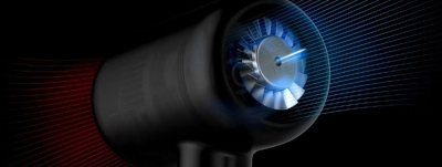 Il motore digitale con turbo-ventola a 17 eliche produce un potente flusso d'aria di 18 L/S. Questo rende il prodotto del 30% più efficiente nell'asciugatura rispetto agli asciugacapelli con motore digitale ed è 6 volte più rapido degli asciugacapelli con motore standard.