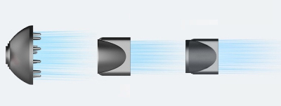 Il getto d' aria ad alta velocità raggiunge direttamente le radici del capello per un' asciugatura più rapida e uno styling preciso.